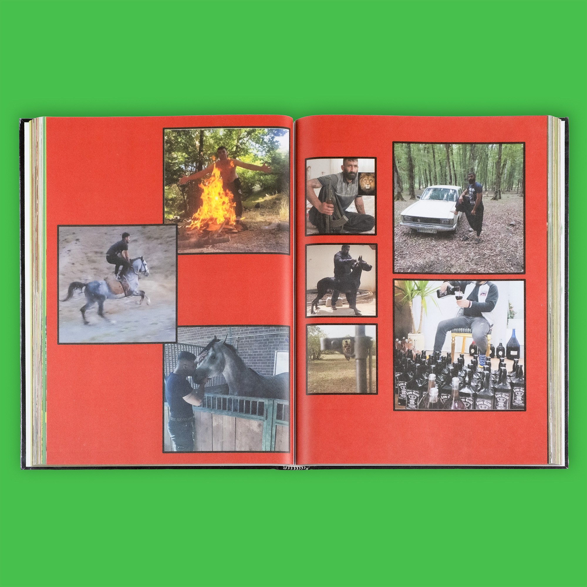 Kharabat Vol. 1, by Tehran-based artist Farhad Qashqai, is a found-photo book documenting the all-male world of Iran’s Kharabatis—a working-class subculture rooted in brotherhood, street rituals, and ancestral defiance. Sourced from digital relics, personal albums, and online ephemera, the book moves through prisons, gyms, living rooms, and city streets, revealing a world where loyalty is scripture, masculinity is sacred, and life itself is seen as Kharabat: ruins