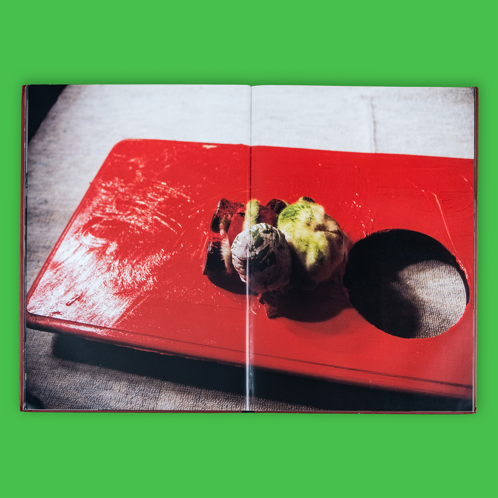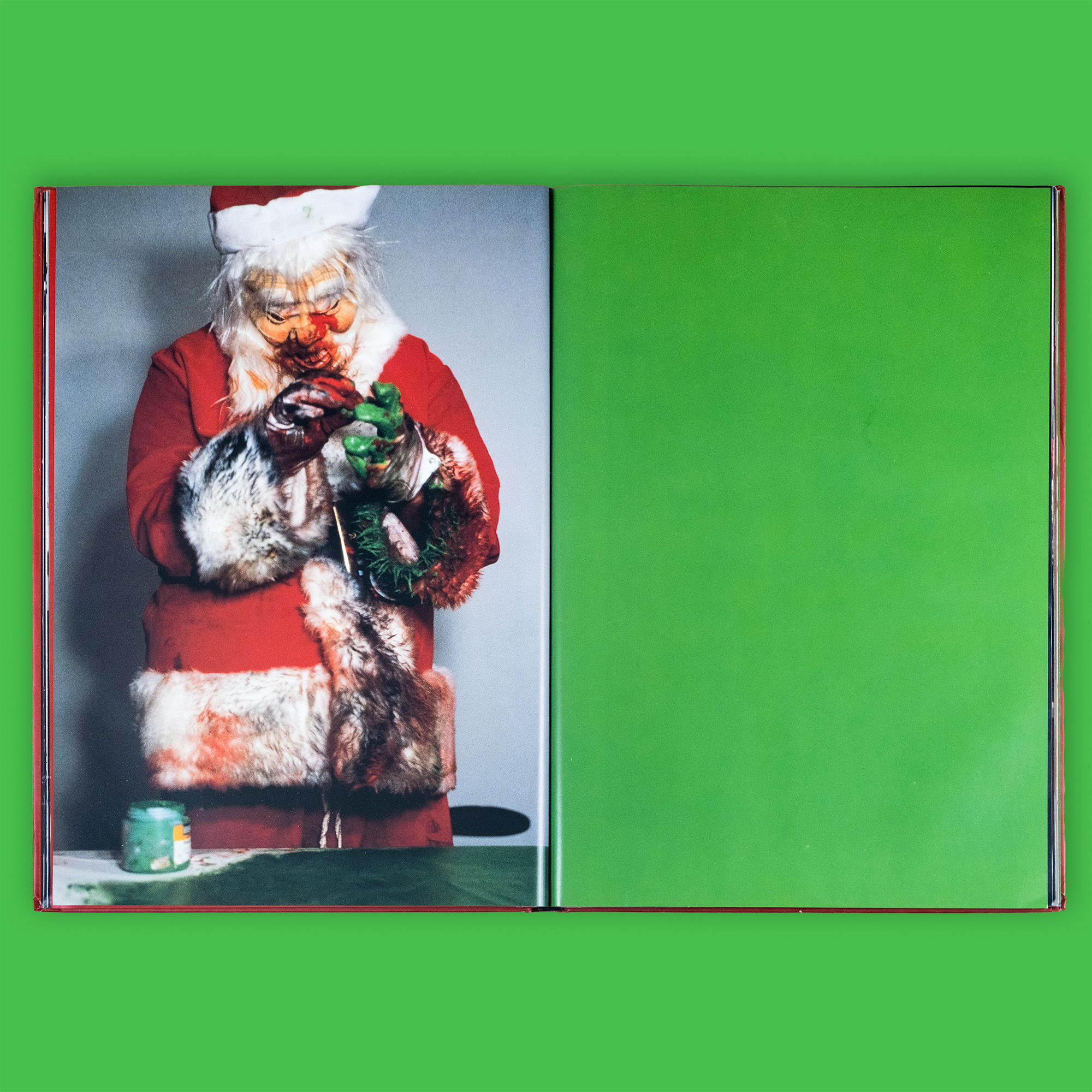 With its large format, and cheerful red-and-green palette, this oversized book documents Paul McCarthy’s 1996 performance at Tomio Kayama Gallery. With 75 crispy red images from. the blood soaked and holiday spirited performance, additionally there are 10 drawings that Santa made during his performance.